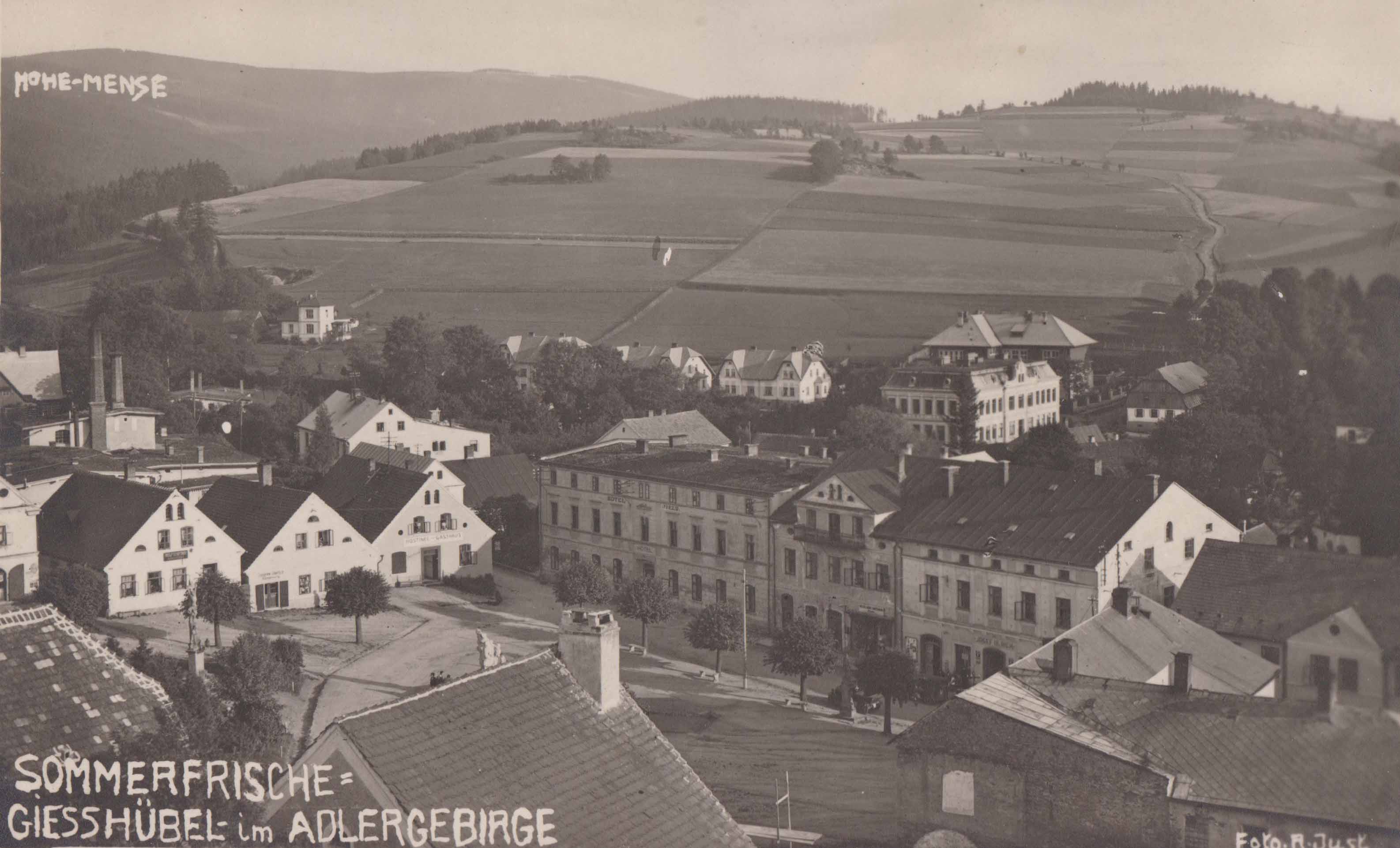 Das Hotel Jirku, früher "Gasthof zum Feldmarschall Radetzky" genannt, stand am Ring des Mensestädtchens Gießhübel. Von weither kamen Ausflügler und Touristen, die das Adlergebirge kennen lernen wollten und hielten Einkehr "beim Jirku".