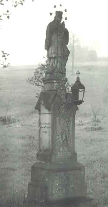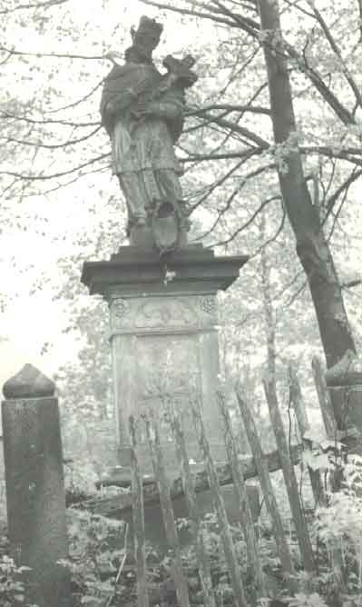 Johannes Nepomuk aus Stein, steht an der Brücke oberhalb der Weberei Czerny Anton Nr. 107/O. Genannter war auch Eigentümer. Die Statue steht noch.