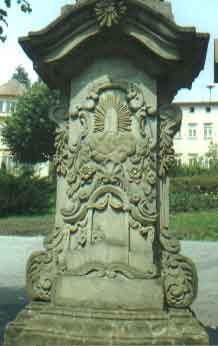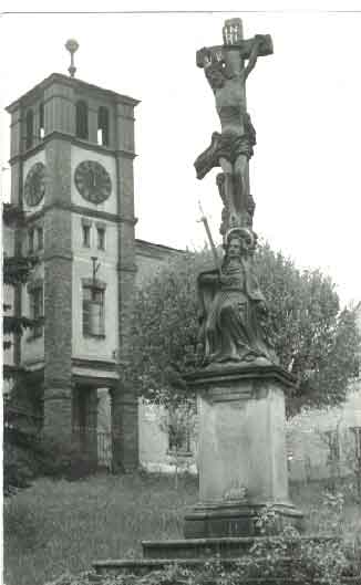 Missionskreuz oberhalb der Diagonale am Ringplatz, errichtet am 2.11.1718 aus Stein. Das 9 m hohe Kreuz wurde in den neunziger Jahren bei einem Gewitter schwer beschädigt. Es stand nur noch der Sockel mit der Marienfigur. Frau Jaroslava Lemfeldova (Museumsleiterin) sammelte die Bruchstücke auf. Das Kreuz wurde wieder repariert.
