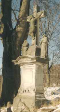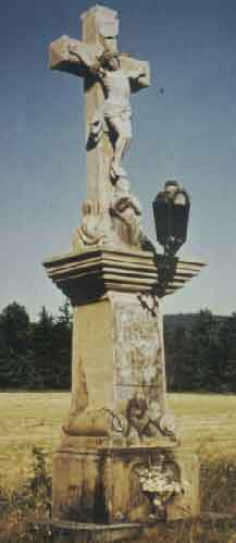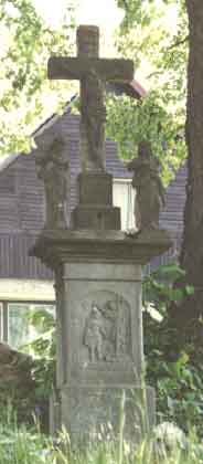 Kreuz aus Stein unterhalb des Gasthauses Czerny an der Weggabelung zur Weberei Schintag, errichtet von Stonjek um 1842. Letzter Eigentümer: Christine Schintag. Eine Figur ist verschwunden.