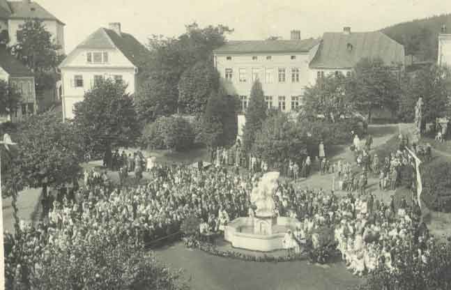 Ergänzung: das Kriegerdenkmal in Gießhübel wurde von dem bekannten akademischen Bildhauer Schwantner aus Trautenau gestaltet. Der Steinblock stammte aus Schlaney. Der Preis belief sich auf 34 000 Kc. Sie wurden durch freiwillige Spenden und den Ertrag von Theateraufführungen aufgebracht. Zur Errichtung wurde der alte Brunnen auf dem Ringplatz adoptiert. Die Denkmalenthüllung fand am 26. 8. 1928 statt.