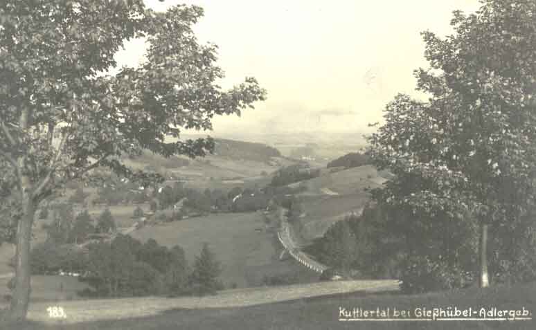 Gern möchte ich noch einmal die alte Straße von Gießhübel über Kuttel nach Lewin laufen! Wie oft bin ich als Kind diesen Weg gegangen oder im Winter mit dem Schlitten oder den Schneeschuhen hinuntergefahren, denn in Lewin - Hummelstadt hieß es ja damals! - wohnte meine Großmutter.