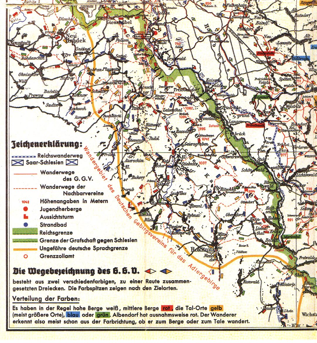 Wanderkarte (um 1934) mit Angabe der deutsch-tschechischen Sprachgrenze
